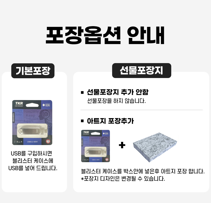• ÆÐŰÁö, ¼±¹° »óÀÚ µî ¿É¼ÇÀ» Ãß°¡ÇÏ¿© ¹è¼Û ÈÄ ¹ÝǰµÈ »óǰÀÇ ¼±¹°»óÀÚ°¡ ÈѼյǾú°Å³ª µ¿ºÀÇÏÁö ¾ÊÀº °æ¿ì, ÇØ´ç ºñ¿ë °øÁ¦ ÈÄ È¯±ÞµÉ ¼ö ÀÖ½À´Ï´Ù.