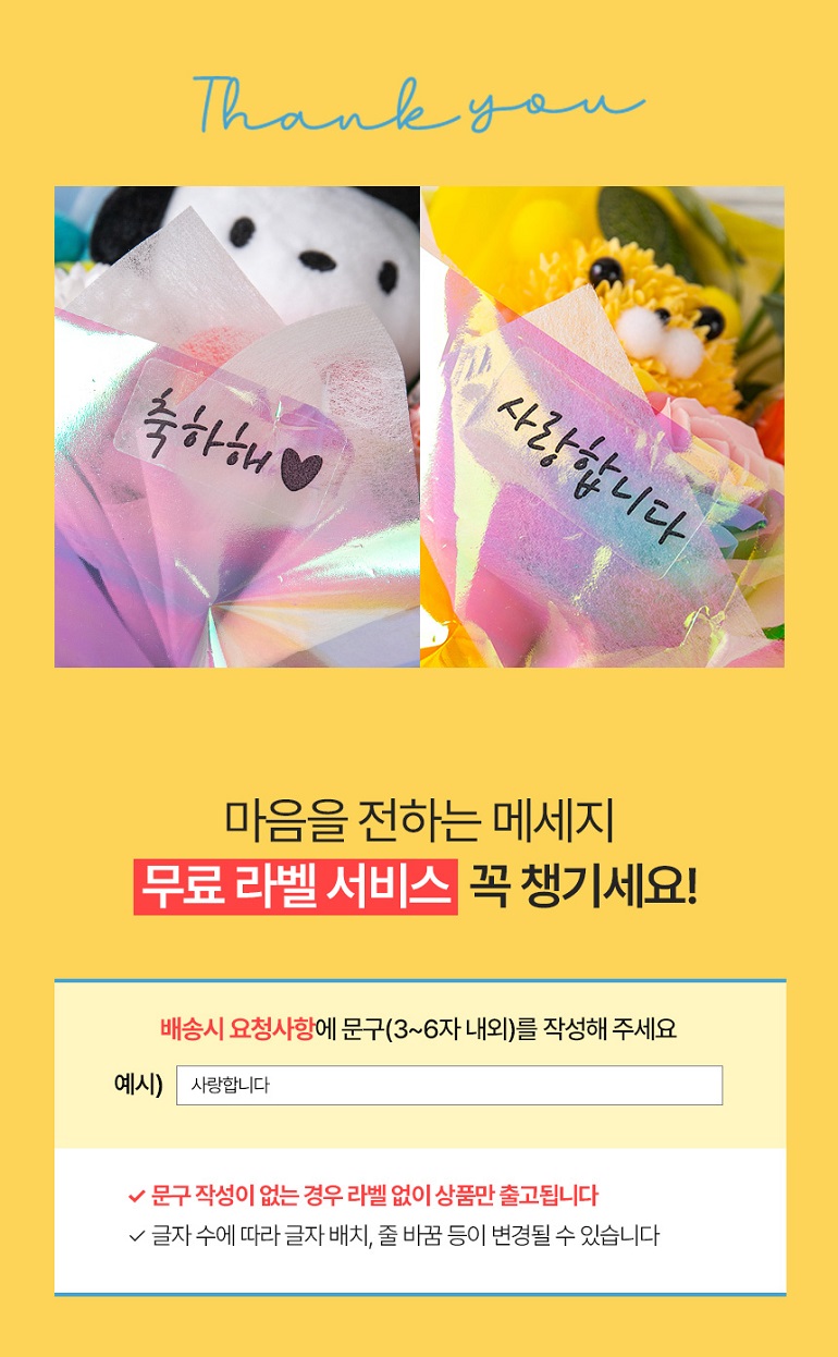 • ÆÐŰÁö, ¼±¹° »óÀÚ µî ¿É¼ÇÀ» Ãß°¡ÇÏ¿© ¹è¼Û ÈÄ ¹ÝǰµÈ »óǰÀÇ ¼±¹°»óÀÚ°¡ ÈѼյǾú°Å³ª µ¿ºÀÇÏÁö ¾ÊÀº °æ¿ì, ÇØ´ç ºñ¿ë °øÁ¦ ÈÄ È¯±ÞµÉ ¼ö ÀÖ½À´Ï´Ù.